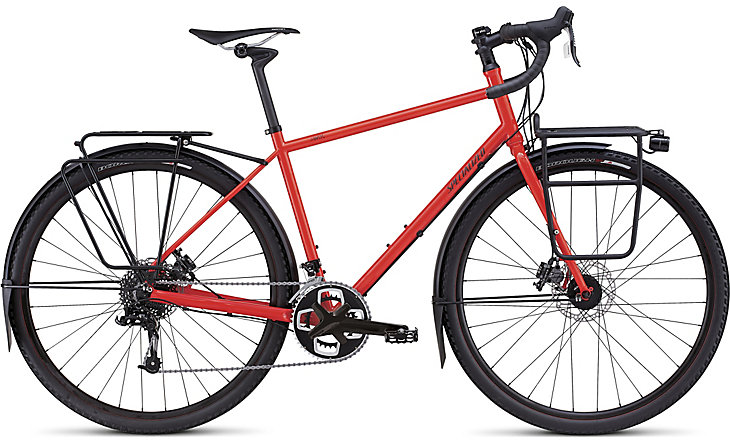 Mit einem AWOL EVO gibt es praktisch nur eine Regel: Es gibt keine Regeln – zumindest nicht dafür, wie du mit deinem AWOL unterwegs bist. Denn dieses Bike ist an Vielseitigkeit kaum zu überbieten: Es ist prädestiniert als Reiserad für lange Strecken, aber genauso im Alltag ein verlässlicher Partner. Der robuste Stahlrahmen mit seiner entspannten Geometrie lässt dich auch nach mehreren Tagen noch komfortabel im Sattel sitzen. Die spezielle CG-R Sattelstütze verleiht dem Sitzbereich noch mehr Komfort. Dank widerstandsfähiger Pulverbeschichtung in markantem Rot wirst du bei schlechten Lichtverhältnissen besser wahrgenommen; die leicht laufenden Reifen mit Armadillo-Pannenschutz sind hart im Nehmen. Mit den halb-hydraulischen TRP HY/RD Scheibenbremsen hast du immer die volle Kontrolle und der SRAM 2×10 Antrieb bietet dir für jede Situation den richtigen Gang. Aber hiermit nicht genug, das AWOL EVO hat noch weitere praktische Features auf Lager: Der Nabendynamo liefert nicht nur Saft für die helle Lichtanlage, er versorgt auch den USB-Ladeport über dem Vorbau mit Strom, damit du deine Geräte laden kannst; der Clou dabei: mit dem AWOL SWITCH am Lenkerende wählst du, wohin der Strom fließen soll: zur Lampe, zum Mobiltelefon oder eben garnicht. Außerdem wäre da noch ein Tubus-LOGO Gepäckträger, das Specialized Pizza-Rack vorne und leichte Aluminium-Schutzblechen mit super Schutzwirkung. Also Route planen, Sachen packen und raus in die weite Welt!